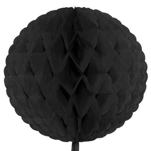 Χάρτινη μπάλα honeycomb μαύρο διαμέτρου 30cm με μαύρα κρόσια 603027