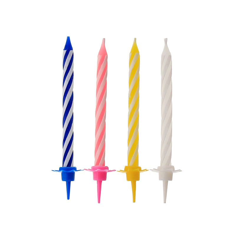 Κεράκια τούρτας γενεθλίων. Η συσκευασία περιλαμβάνει 6 blue navy, 6 κίτρινο, 6 ροζ , 6 λευκά και 3 βάσεις κεριών στο κάθε χρώμα.
