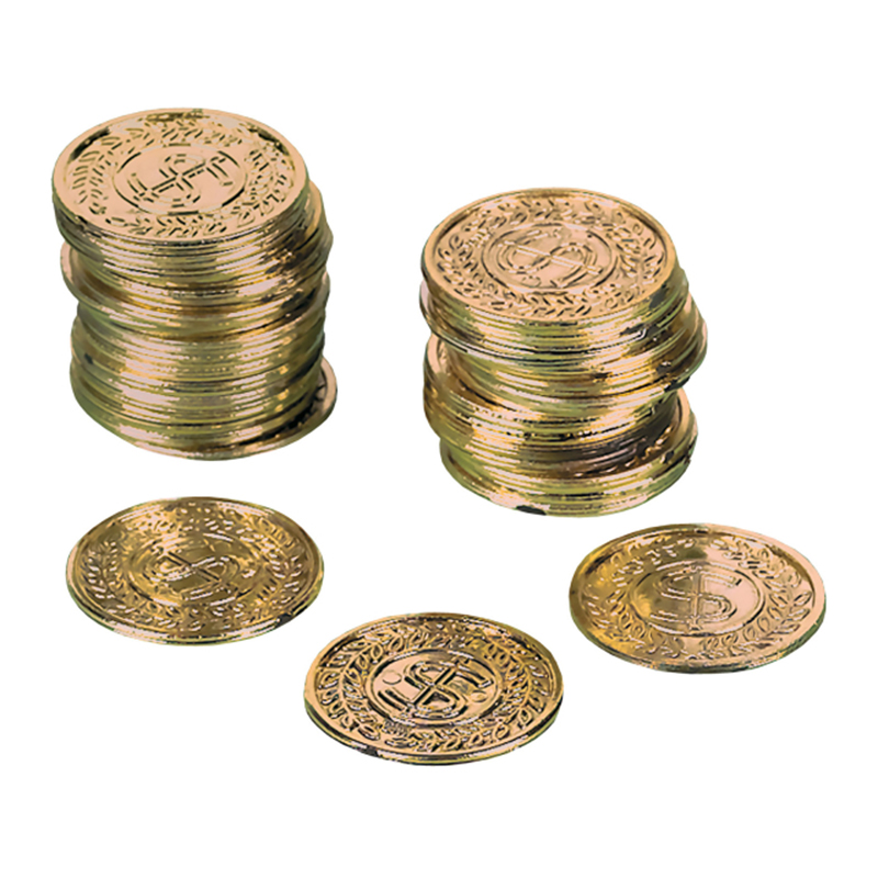Πλαστικά χρυσά πειρατικά κέρματα για να διακοσμήσετε το τραπέζι ή να δημιουργήσετε σκηνικό με θησαυρό! Ιδανικό για γέμισμα πινάτας! Διάσταση νομίσματος: 3,3 x 3,3cm. Συσκευασία: 72τεμαχίων. INT399879.