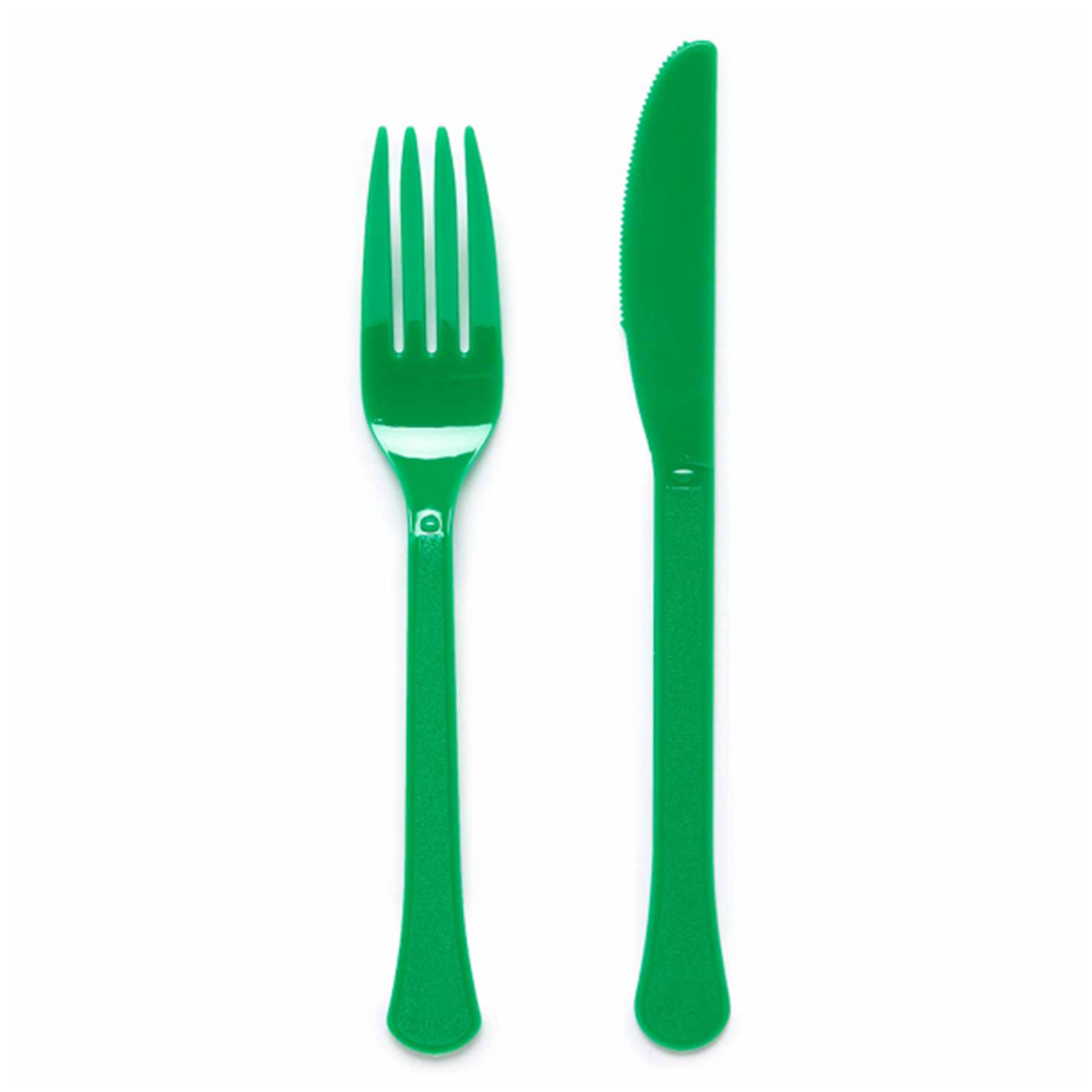 Σετ πλαστικά μαχαιροπήρουνα, σε πράσινο χρώμα. Η συσκευασία περιέχει: 24 τεμάχια (12πηρούνια & 12μαχαίρια). 9915411-208.